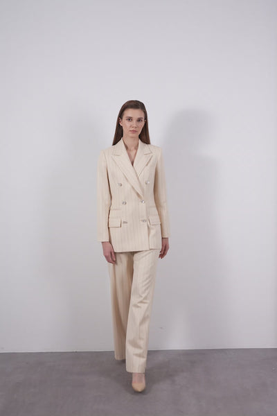 Striped Pearl-Button Jacket