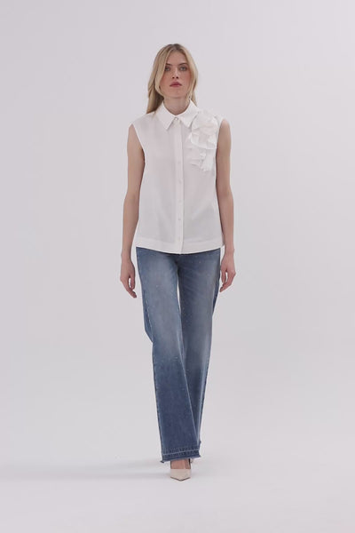 White Accessory-Collar Cotton Shirt