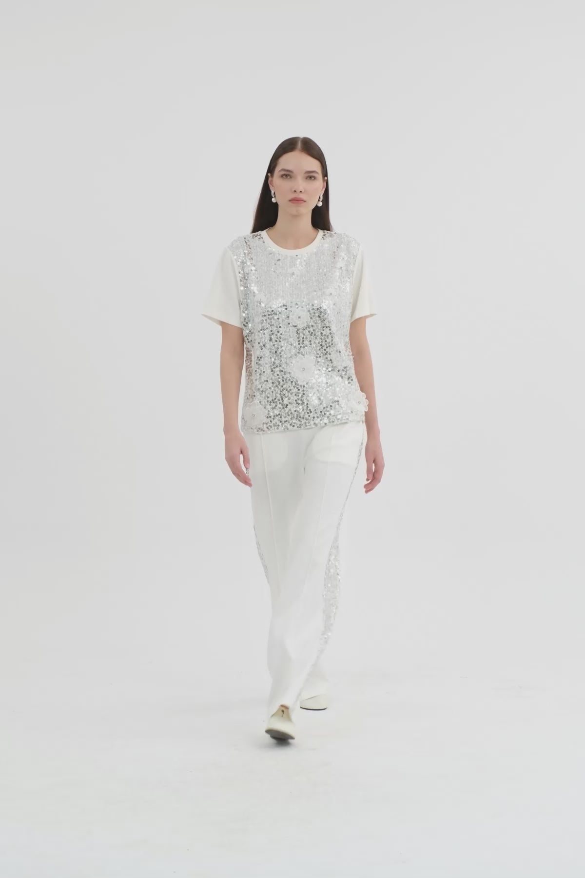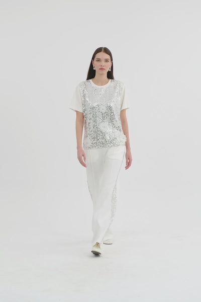 White Floral Embellished Sequin T-Shirt